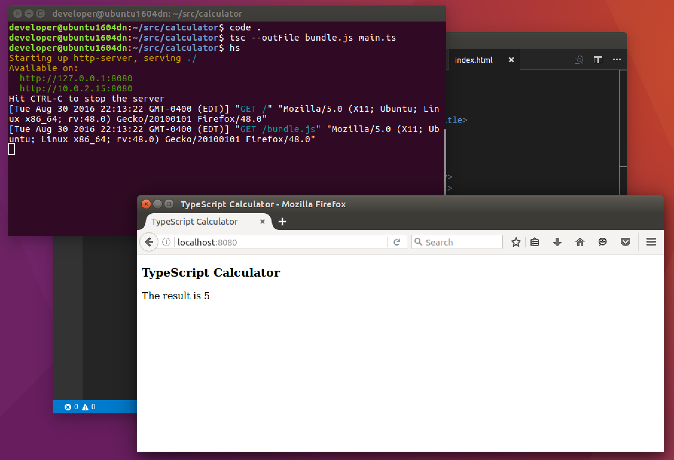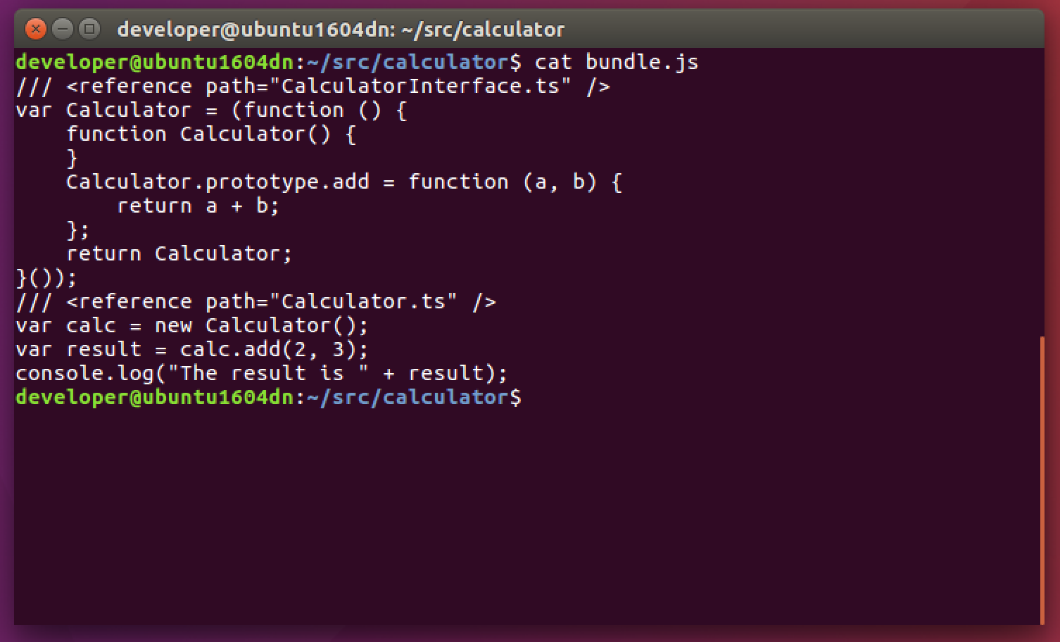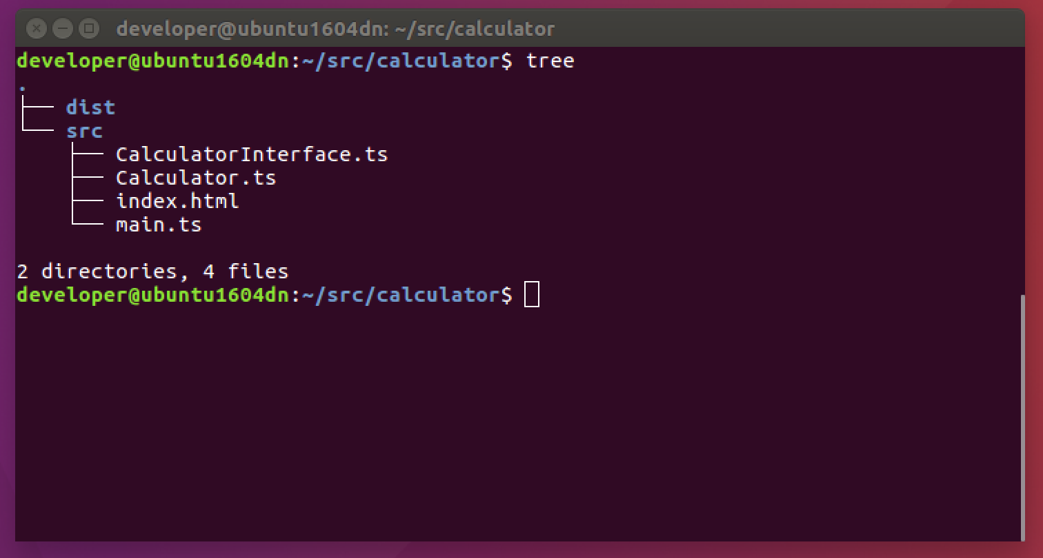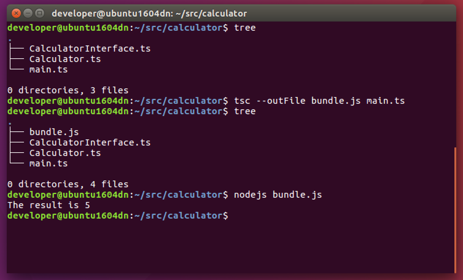 Let’s create a small application to see how we can use TypeScript compiler. I’m going to create the following three files in ~/src/calculator directory.