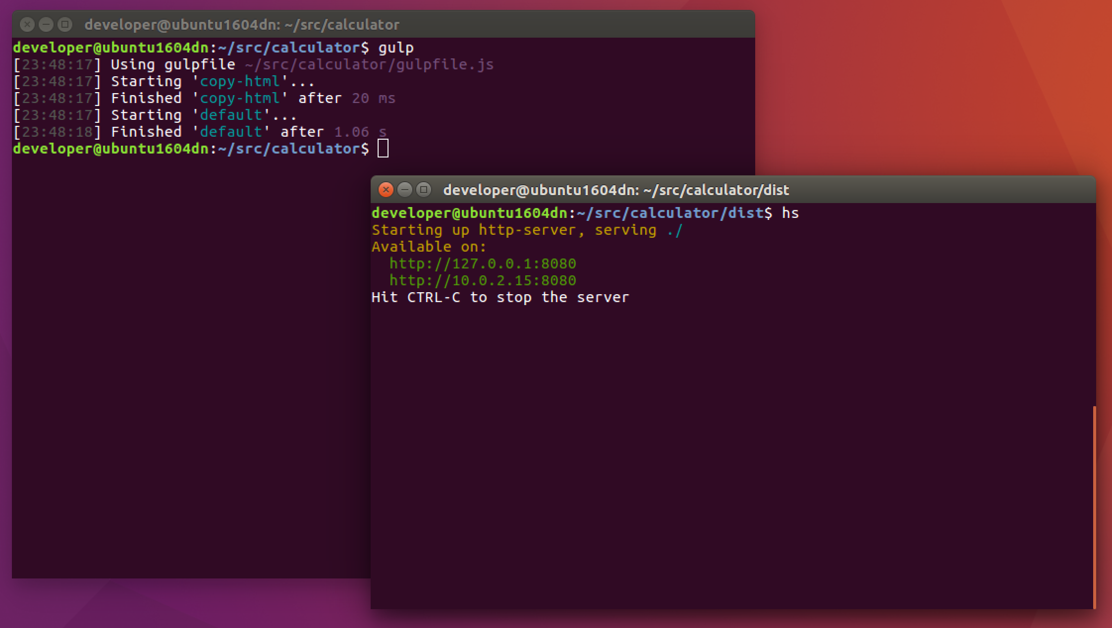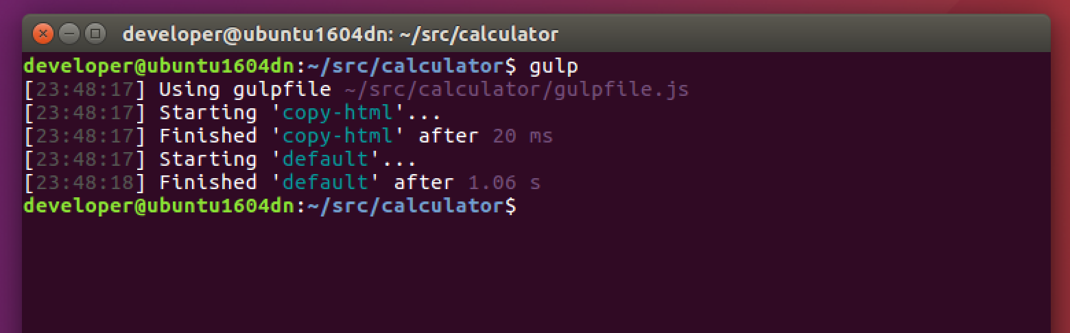 At this point, every time you modify TypeScript code – you only have to run gulp command once again.